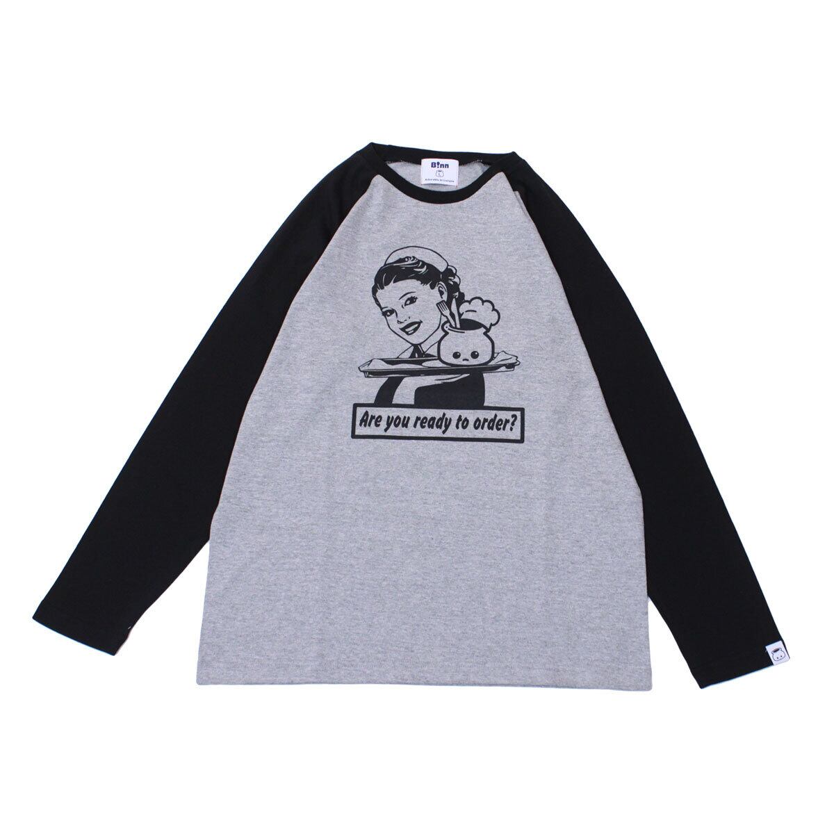 クラシックなアメリカンダイナーとB!nnのミックス! 切り替えラグランがカジュアルなロングスリーブTシャツです。