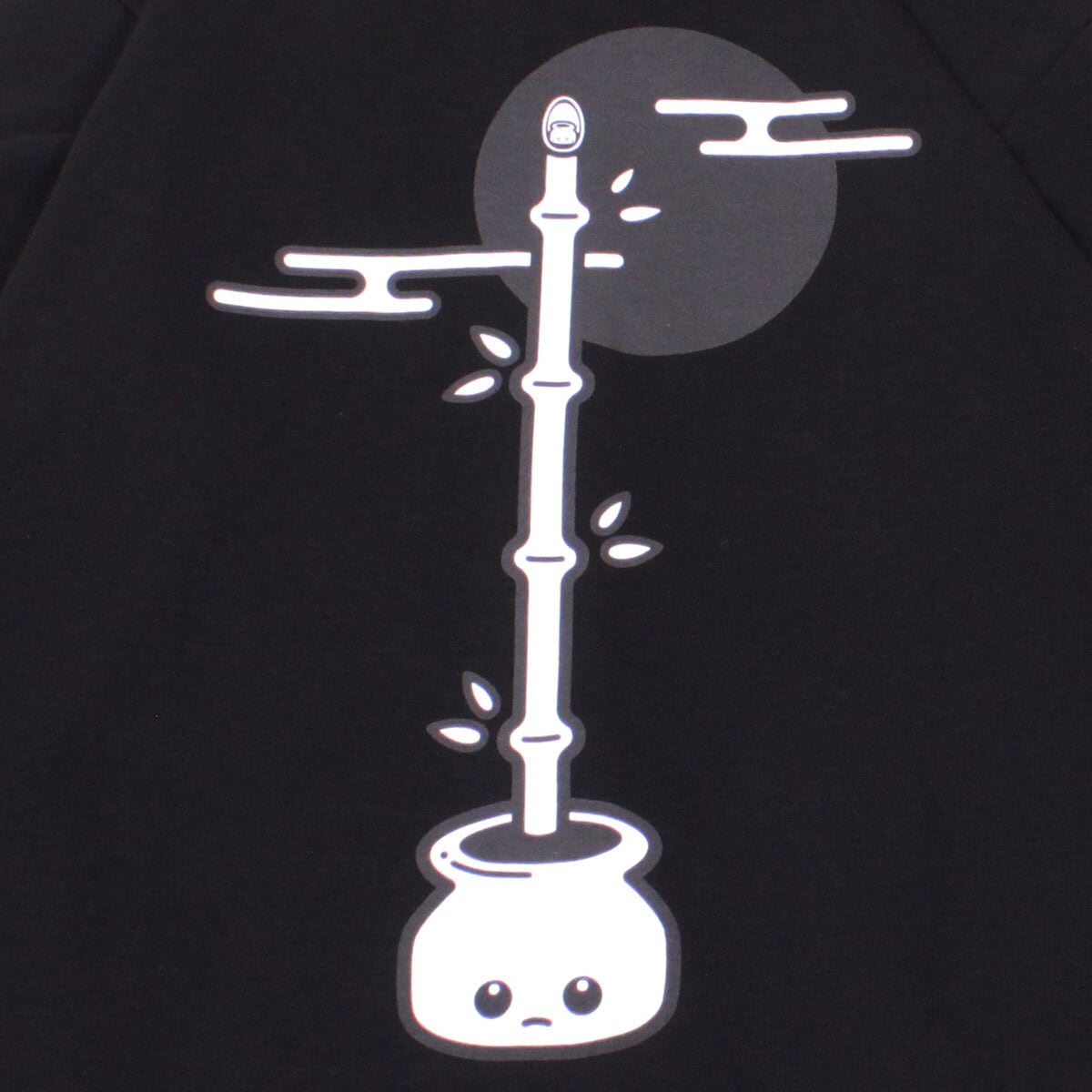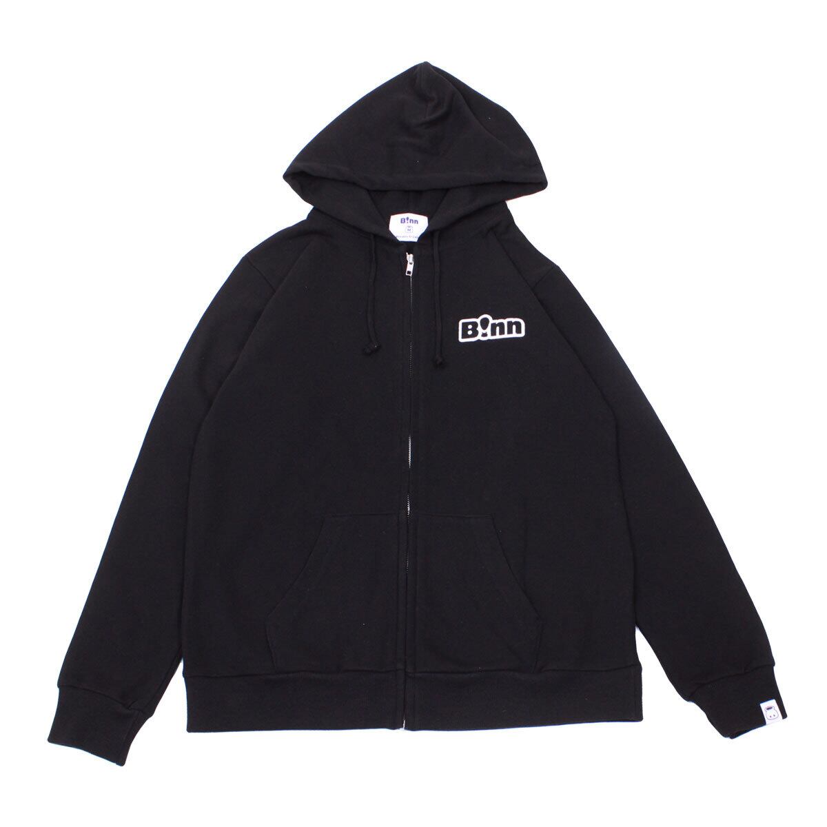 左胸にはシンプルに[B!nn]の刺繍ワッペン、 バックには、月にいるかぐや姫に届くほど、竹を伸ばしている雅なB!nnちゃんがプリントされています。 裏毛、フード部分2枚生地で、着心地の良いボリュームのジップアップパーカーです。