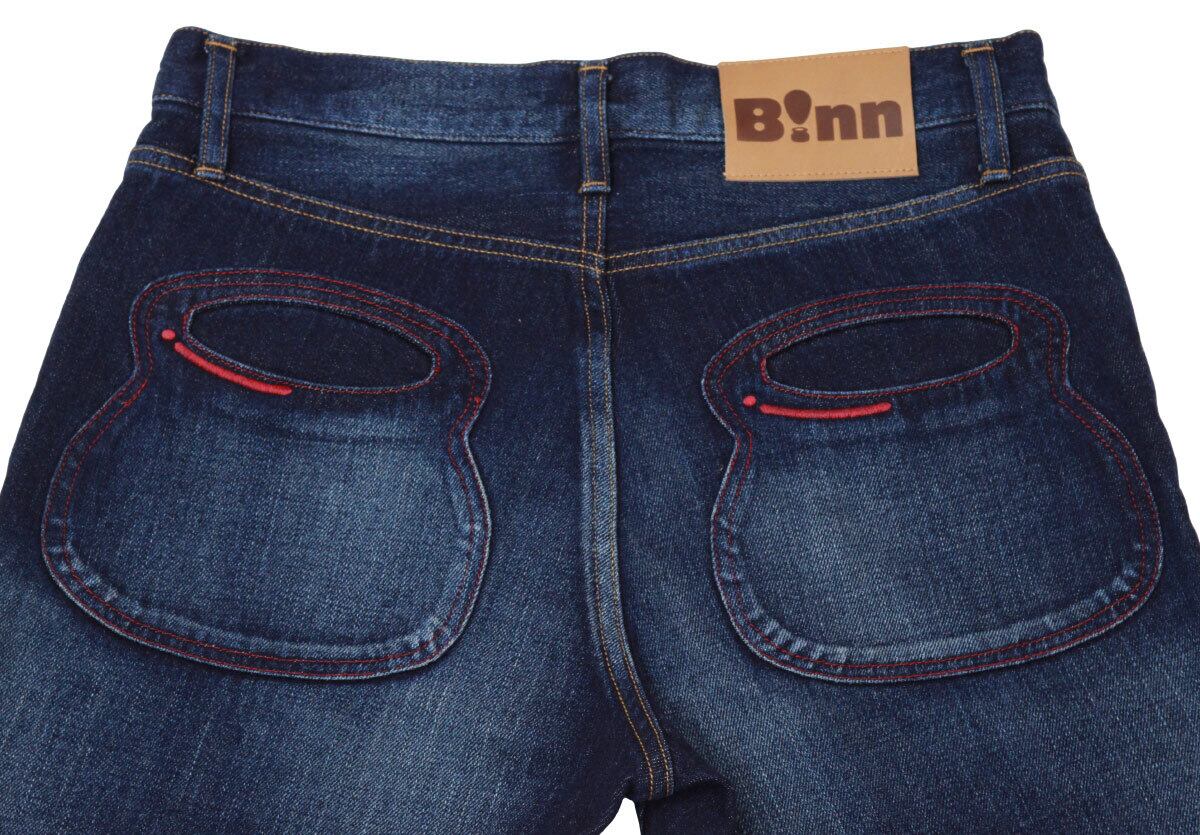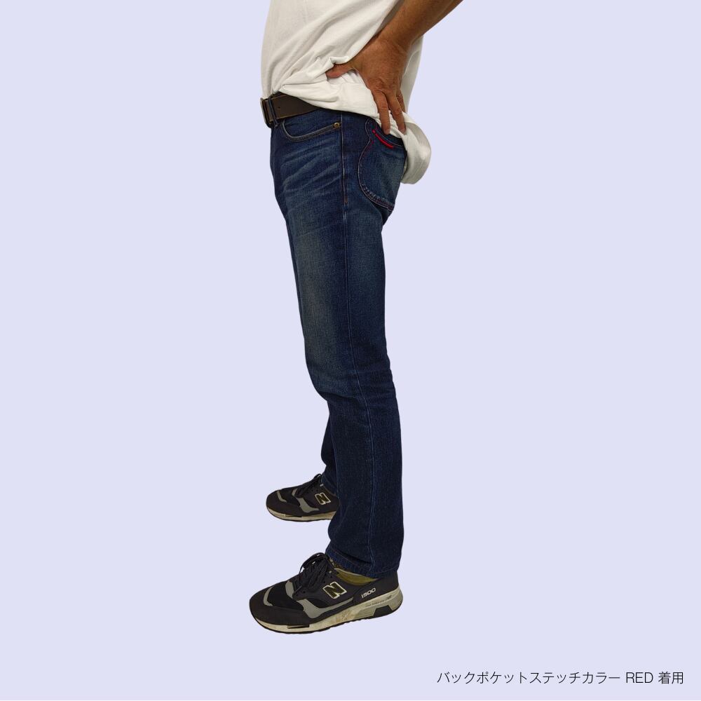 バックポケットは「B!nn」ダイカットで、ステッチのカラーが際立っています。