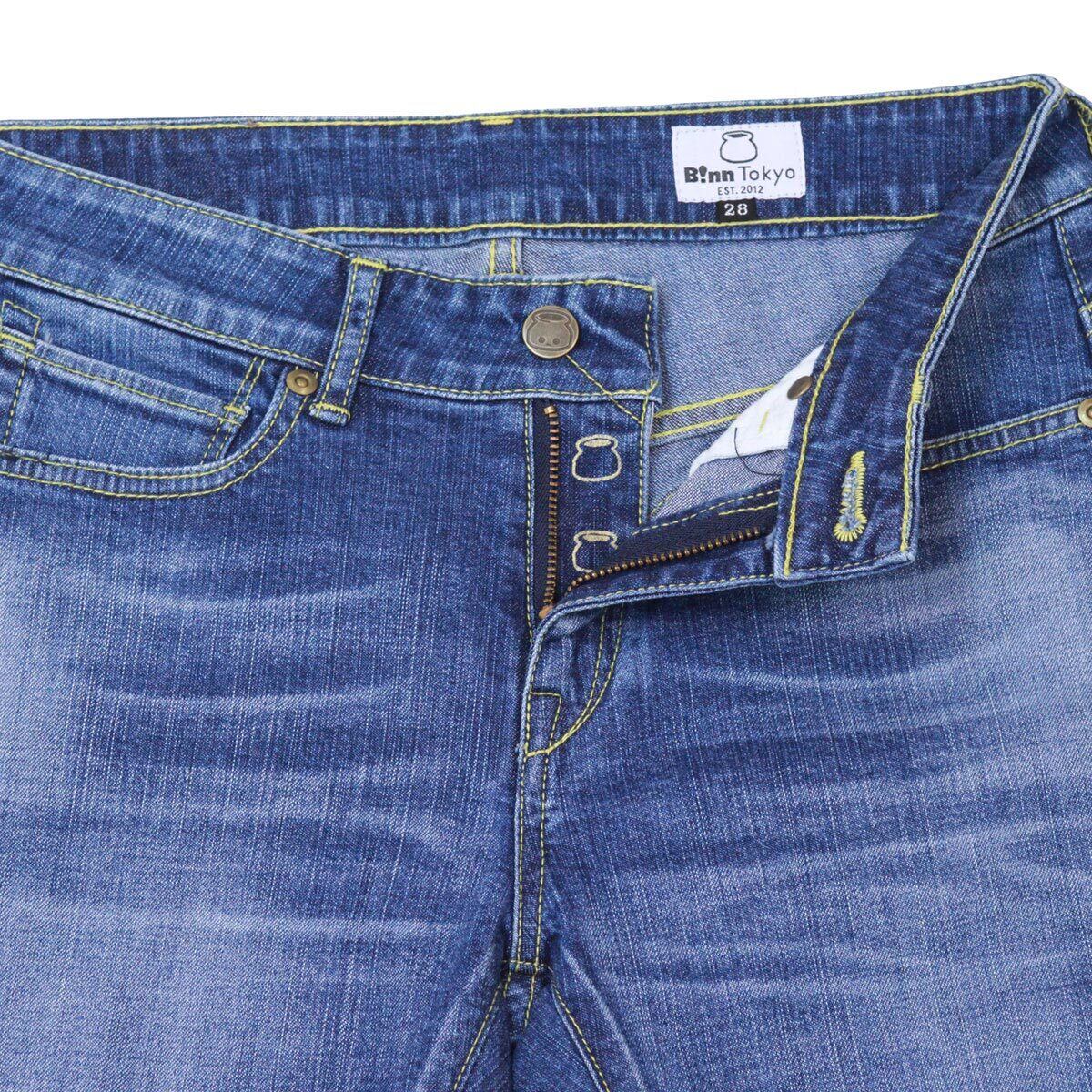 足長効果抜群の細身のシルエットにデザイン性の高いヒゲを加え腿のシェービングは高い位置に短く入れました。 膝にはヒゲ、ウエスト・前ポケットスレーキ上にはポイントシェービングで豊かな表情を演出。 前面は上部に集中させたシェービングが足長効果を更に高め、背面にも、膝裏だけにとどまらずバランスの良いシェービングを施しています。 控えめな色落ちがコーディネートの幅を広げ、ポケットのステッチが映える製品です。